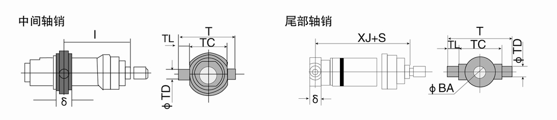 F2=尾部長方法蘭(用于缸徑D≤125);