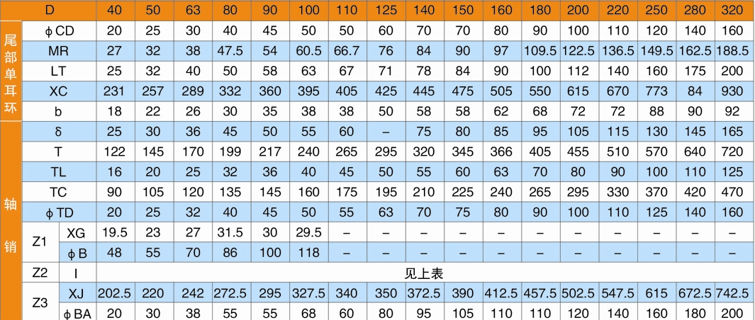 E1=尾部單耳環帶關節軸承;E2=尾部單耳環帶軸套;